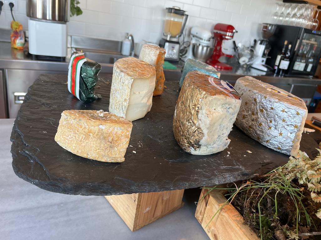 A experiencia comezou cunha visita ás cociñas e á zona na que se preparan os panes. O persoal ofrecéunos unha degustación de queixos asturianos, unha excelente maneira de abrir o apetito.