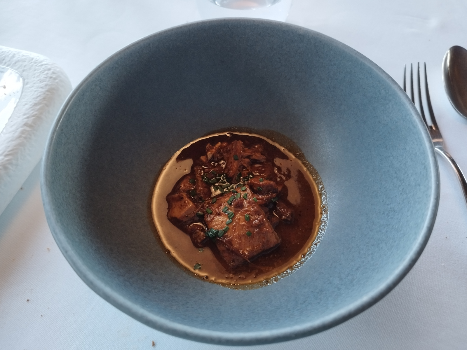 Para a comida, eliximos o menú longo, o menú «A Figueira». O menú consta de 11 pratos, que se sirven nunha orde coidadosamente deseñada para que os sabores e texturas se complementen entre si.