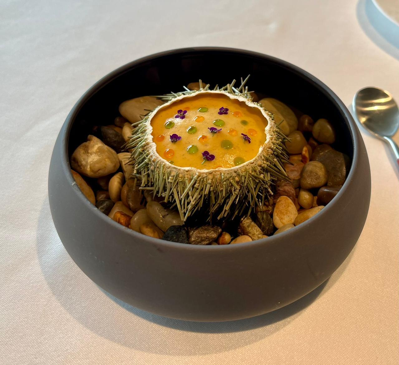 O menú constaba de 6 aperitivos e 14 pratos, ademais dos debidos petit fours. A cantidade de comida foi abundante, así como a súa calidade. Os ingredientes utilizados eran sempre da zona.