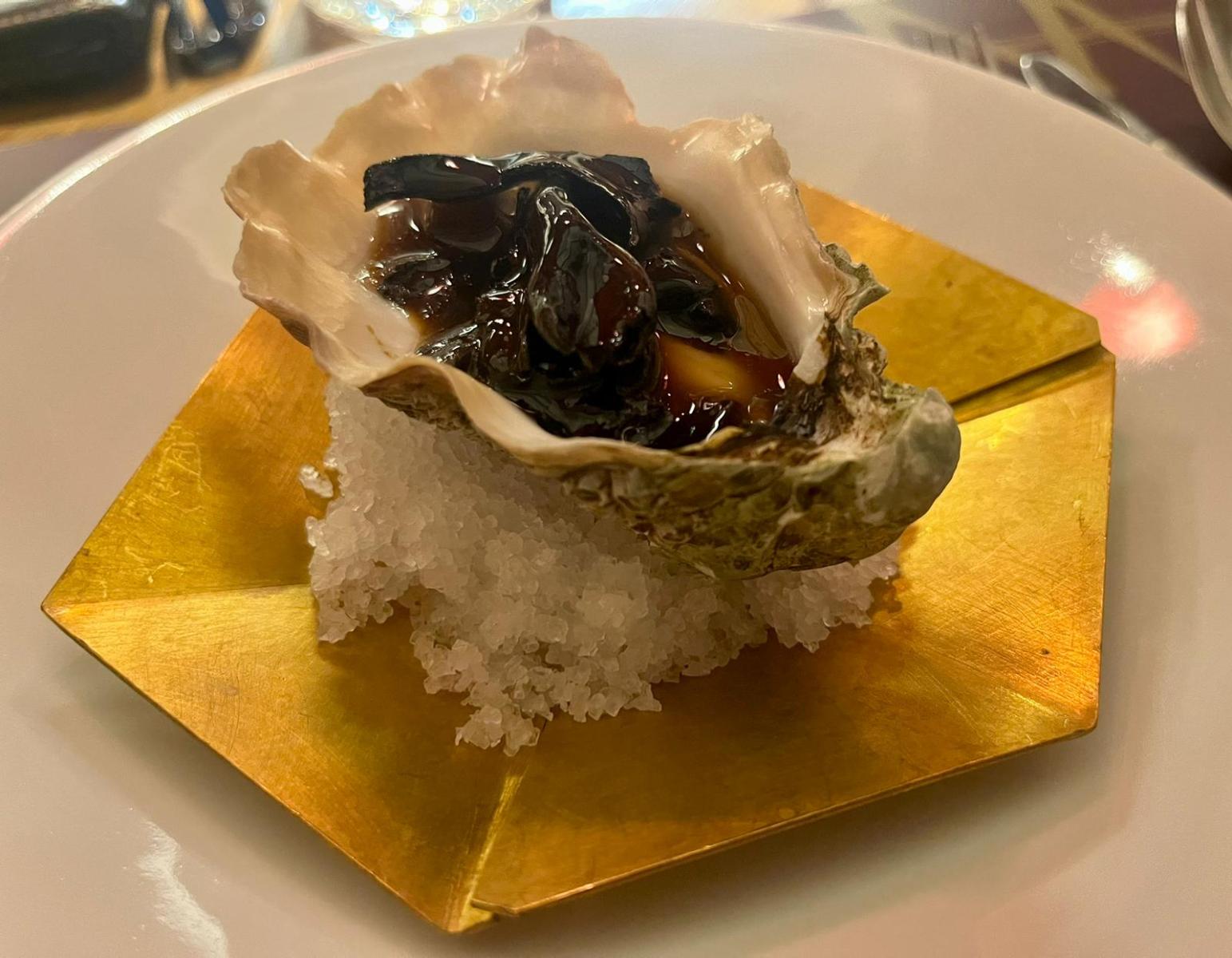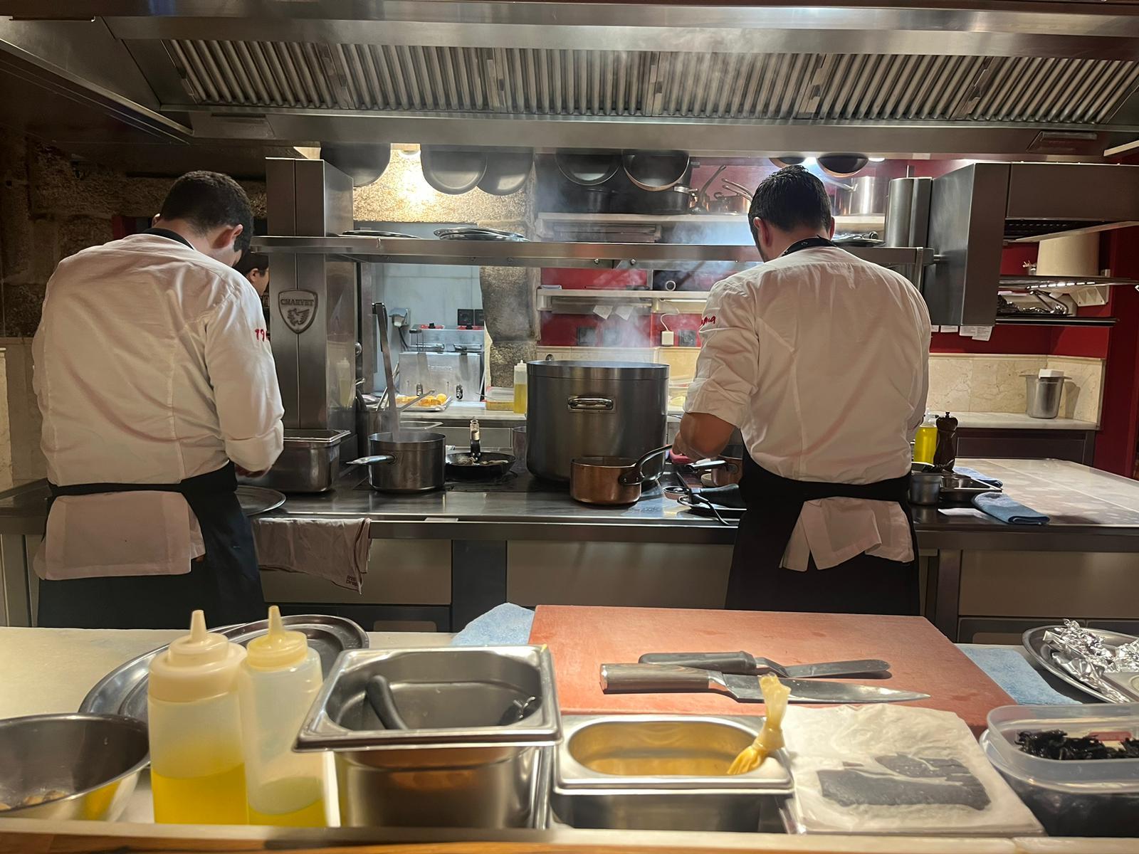 Optamos por sentarnos na barra, proporcionándonos un acceso directo á cociña e permitíndonos presenciar de primeira man a mesturanza de sabores e o traballo dedicado dos chefs. A vista directa á cociña creou un ambiente dinámico e interactivo, intensificando a nosa conexión coa experiencia culinaria.