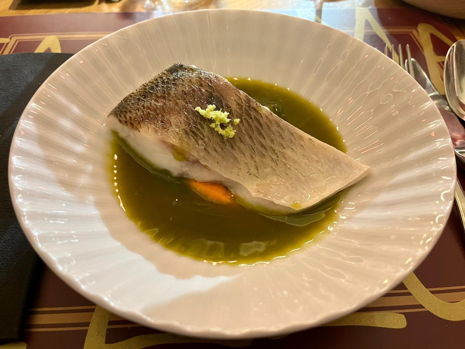 Ao longo da nosa estadía, disfrutamos dunha selección variada e exquisita de pratos. Un coctel de entrada deu comezo á nosa viaxe culinaria, seguido por 7 pratos que nos deleitaron coa súa creatividade e sabor inigualable. Entre eles, a Lubina ao vapor con rabizas e allada destacouse pola súa frescura e delicadeza, o Tartar impresionou pola súa gran cantidade e textura perfectamente equilibrada, e o Pato deleitou coa súa ternez e sabor envolvente.