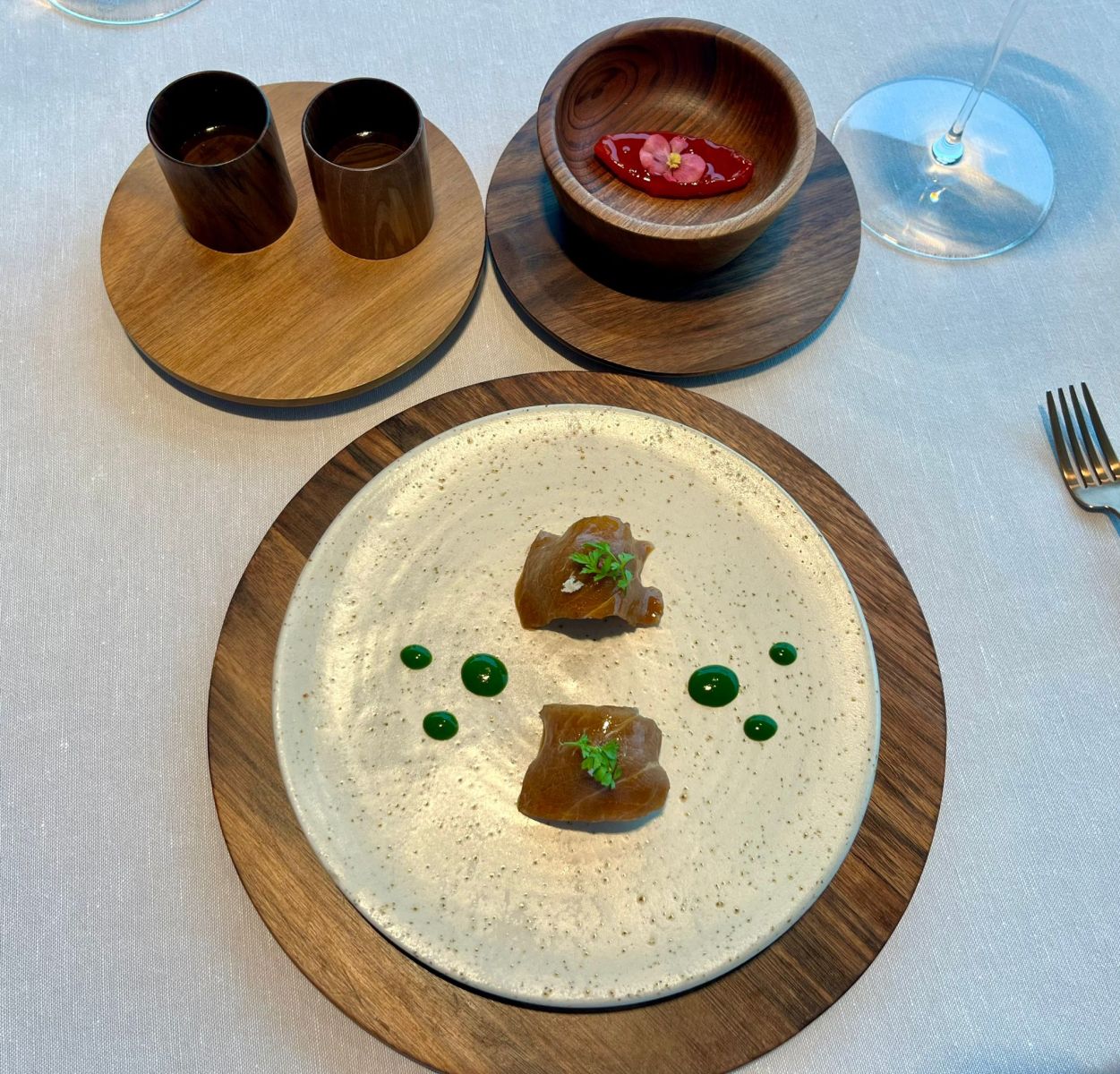 O Culler de Pau ofrece tres menús degustación: Ronsel, Marexada e Descuberta. Como é costume para nós, eliximos o máis longo, o Menú Descuberta, composto por 20 pratos que nos levaron nunha viaxe sensorial inolvidable.