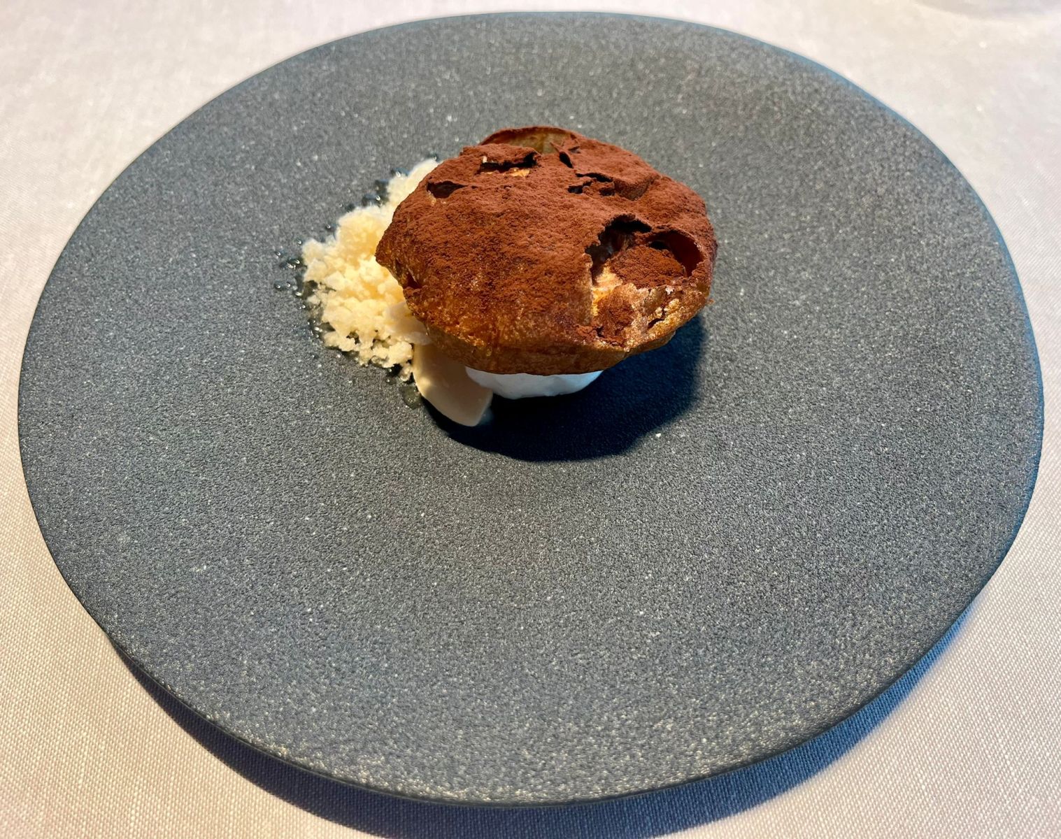 - Torta crujiente, licor café e praliné de almendra: Un postre que pechou a nosa experiencia cun toque doce e sofisticado.