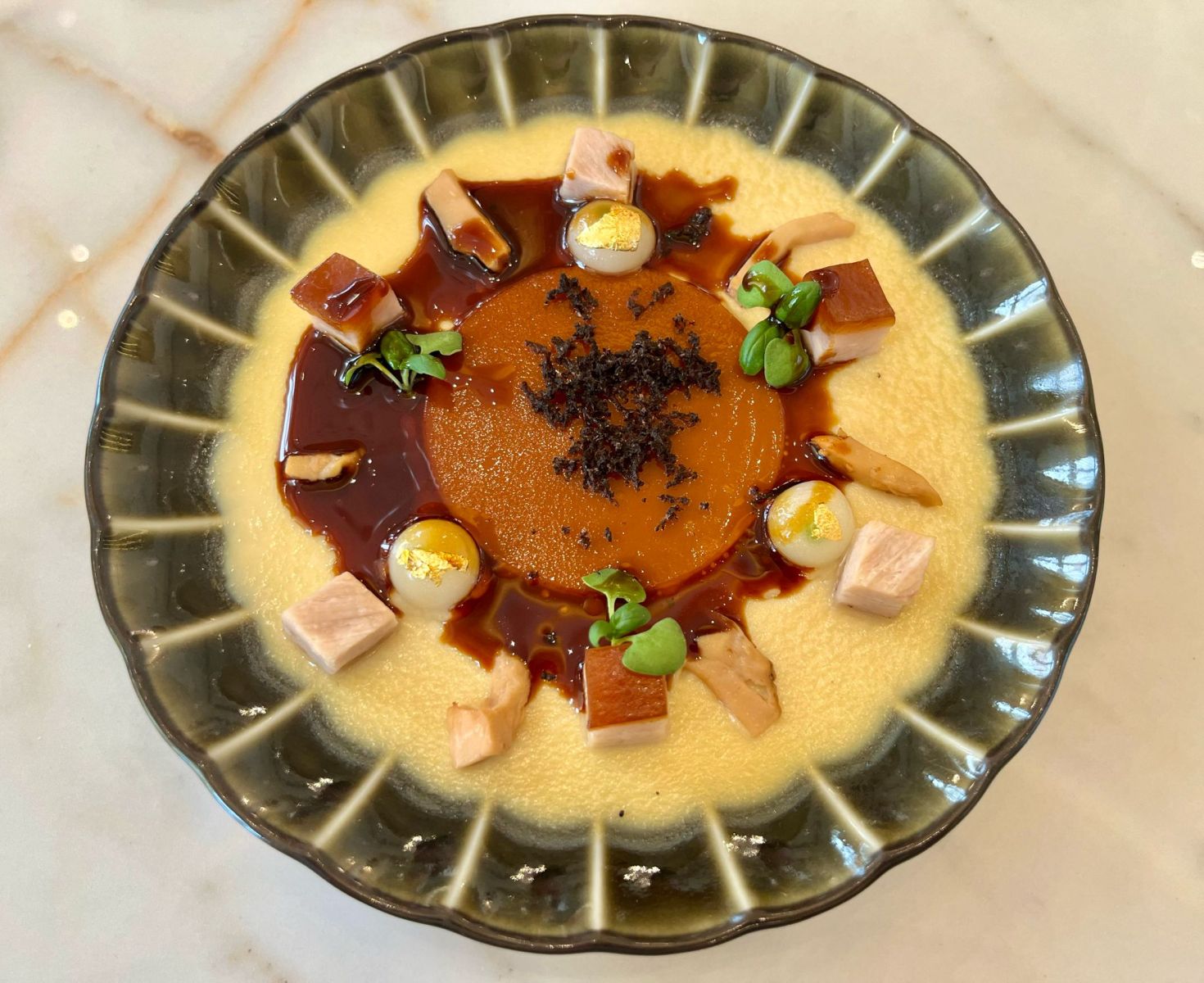 - Creme Brulee de cebollas asadas y papada tostada y setas de temporada: Una reinterpretación de un clásico, con un toque único y delicioso.
