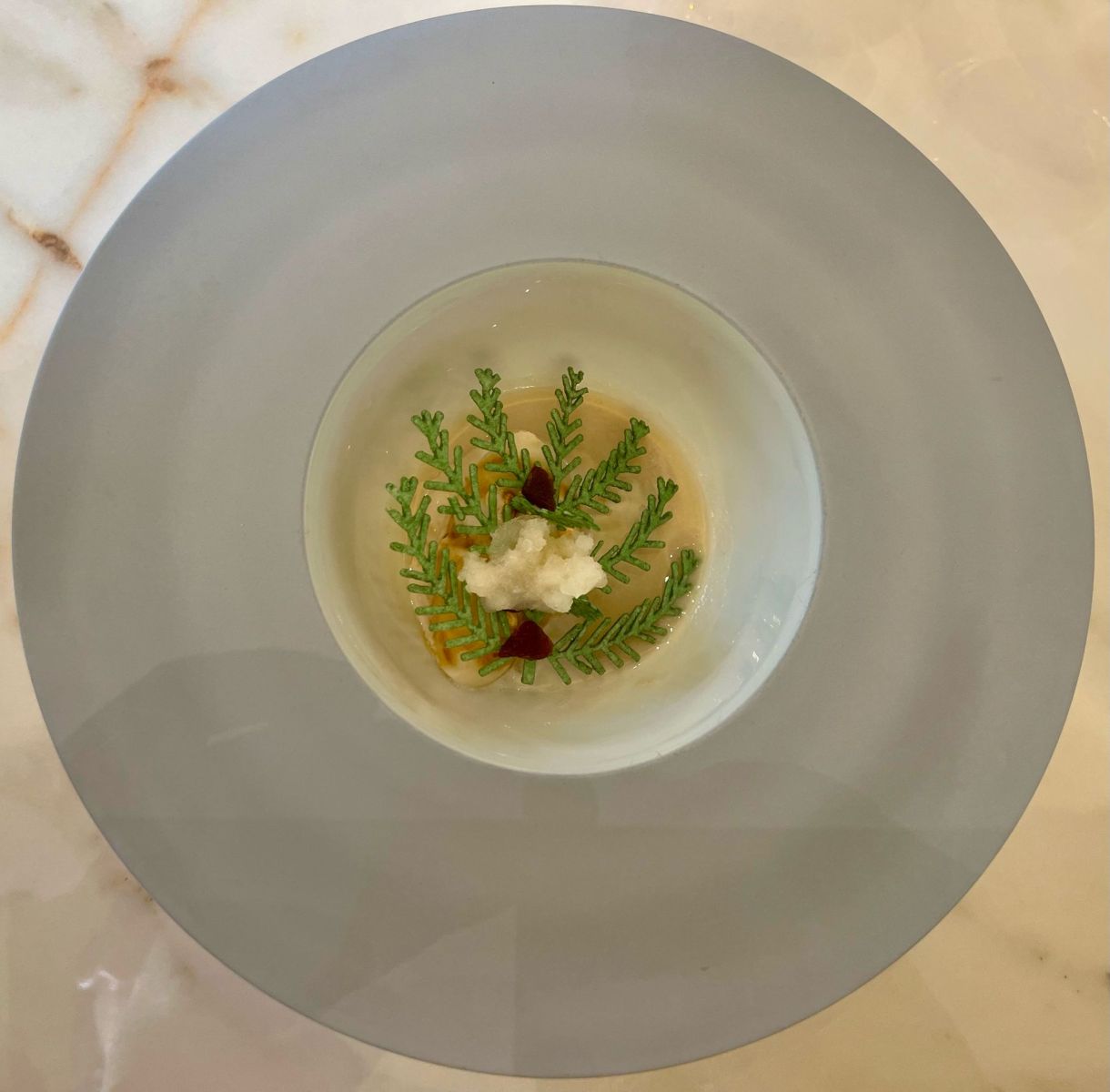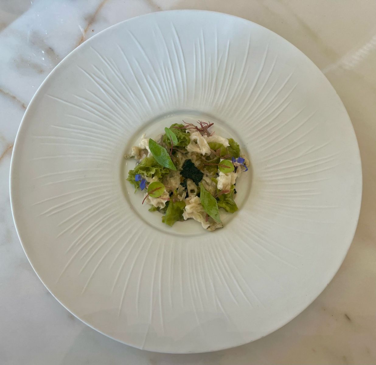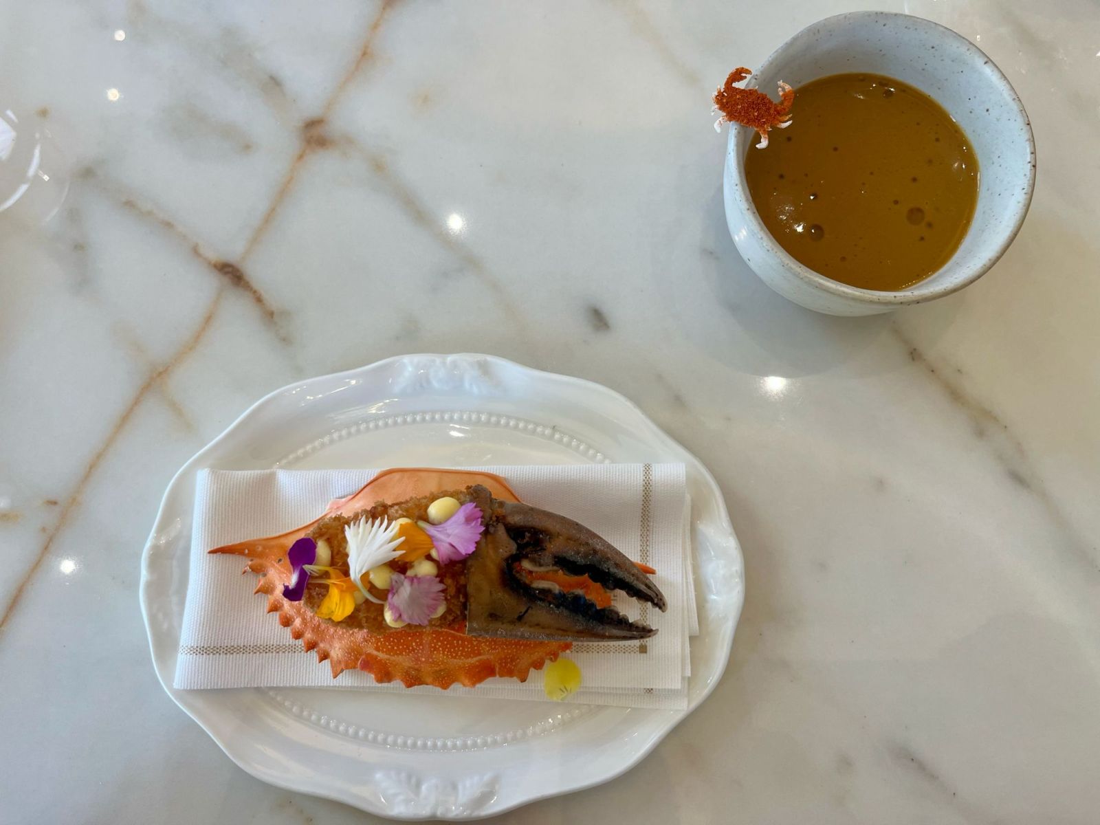 - Pinza de buey de mar, crujiente con bearnesa e infusión de hierbaluisa: Una combinación de texturas y sabores que despertaron nuestros sentidos.