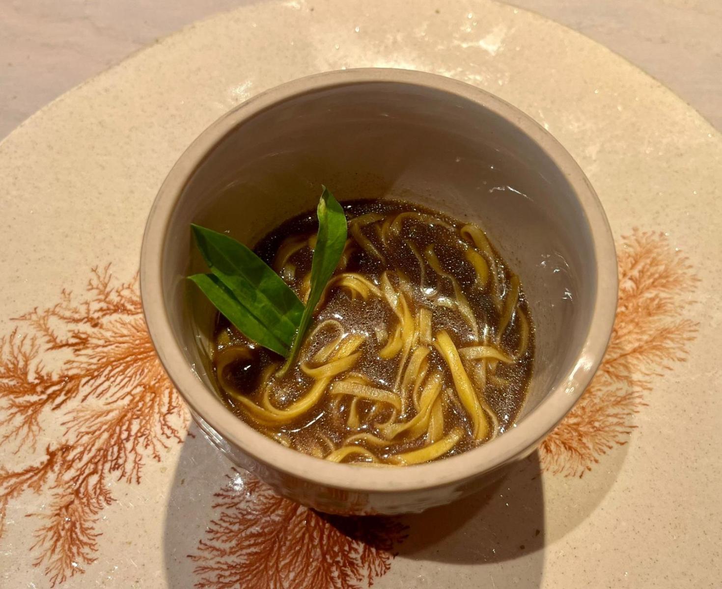 En esta cena decidimos maridar con brebajes suaves creados artesanalmente por el propio equipo de cocina, todos ellos magníficos.