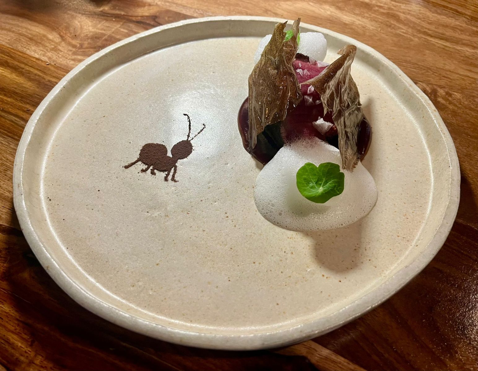 Plato de Caza: Ciervo Uno de los momentos más memorables fue el plato de ciervo, que cerró la serie de platos salados. La carne, cocinada a la perfección, era tierna y sabrosa, con un equilibrio justo entre la intensidad del sabor de la caza y la sutileza de los acompañamientos. Este plato fue, sin duda, uno de los puntos álgidos del menú, demostrando la habilidad del chef para transformar ingredientes tradicionales en algo realmente especial.