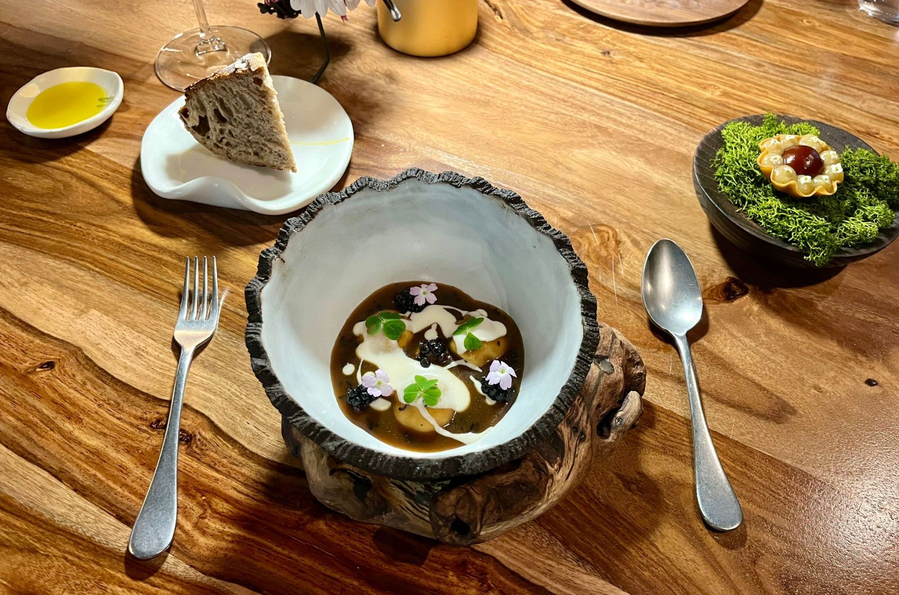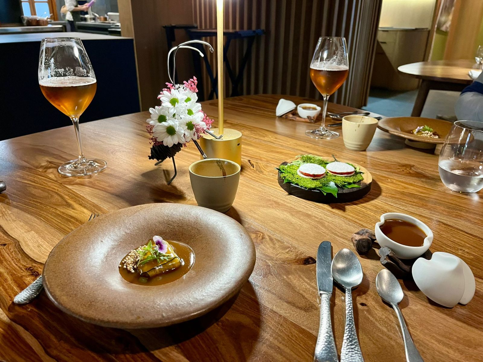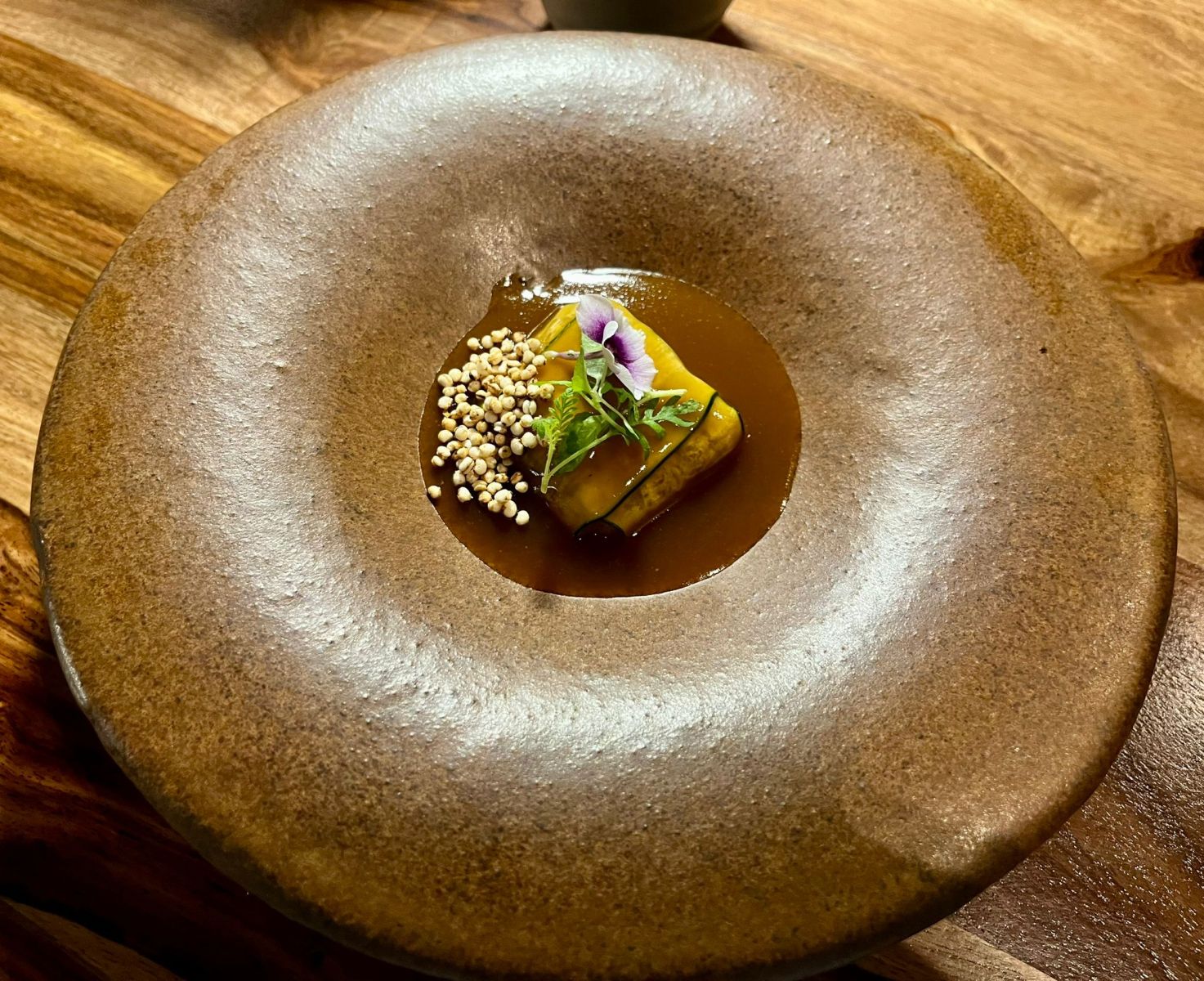 Nos inclinamos por el menú «Entorno y Memoria», una propuesta que consta de 12 elaboraciones cuidadosamente diseñadas para resaltar la riqueza de los sabores locales y la innovación culinaria. Desde el primer bocado, quedamos impresionados por la calidad y el detalle de cada plato.