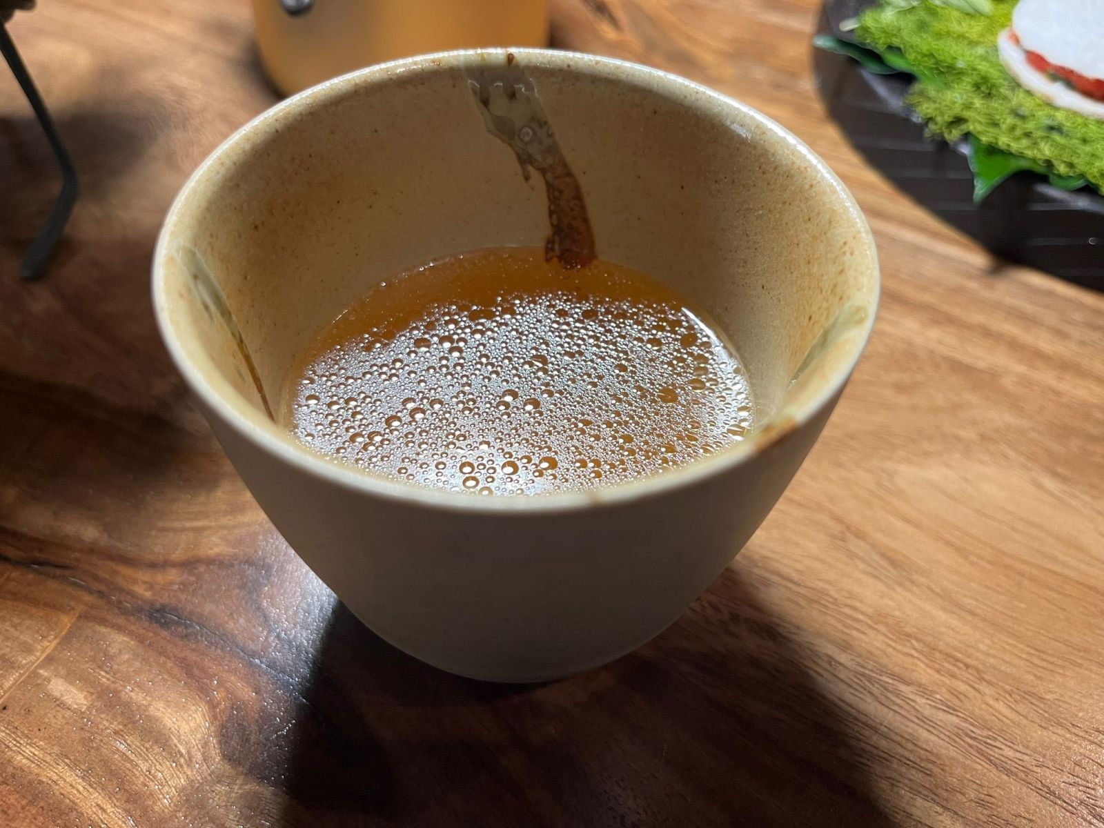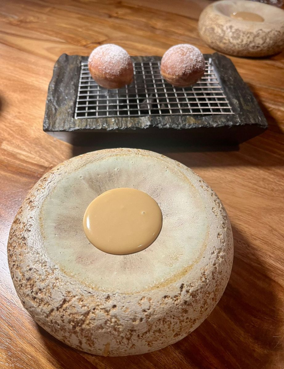 Al final de nuestra comida, tuvimos el honor de ser saludados por el chef Samuel Naveira. Su visita a nuestra mesa fue tanto una muestra de cortesía como una oportunidad para conocer al maestro detrás de las creaciones que acabábamos de disfrutar. Nos habló con sinceridad sobre el estrés que conlleva mantener la excelencia en la cocina, bromeando de manera reveladora sobre su agotamiento: «No os veo», dijo, y aunque sonreíamos, era evidente que sus palabras reflejaban una realidad palpable. La intensidad de su trabajo era tan obvia como su dedicación y pasión por la gastronomía.