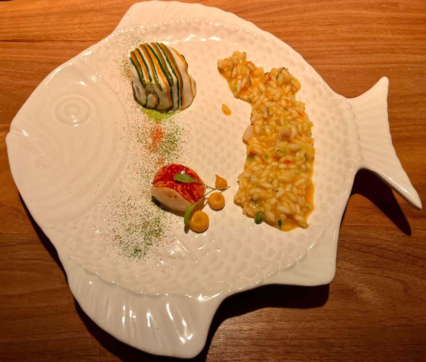• Arroz de Tamboril e Lavagante Nacional, tomate e coentros → Un homenaje a los sabores del mar, con el arroz impregnado de los jugos del rape y el bogavante, realzado con tomate y el frescor del cilantro.