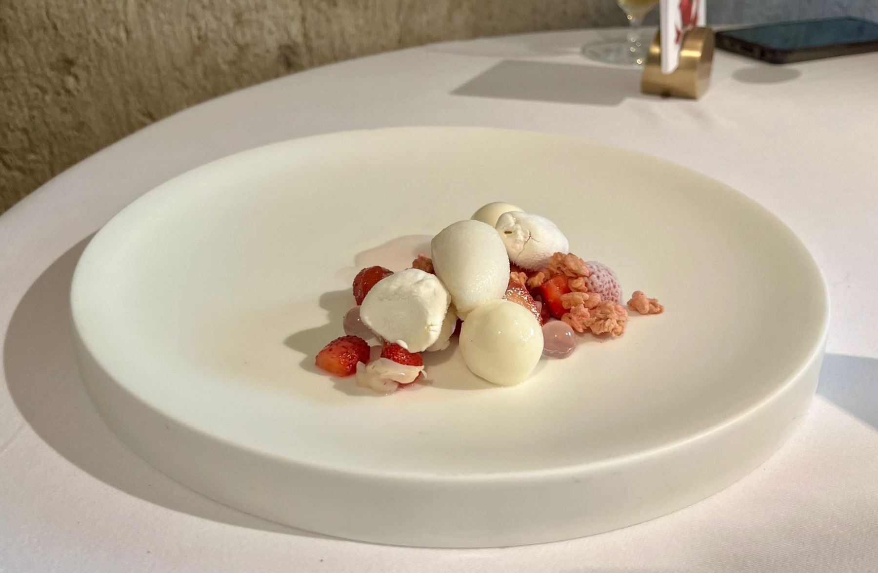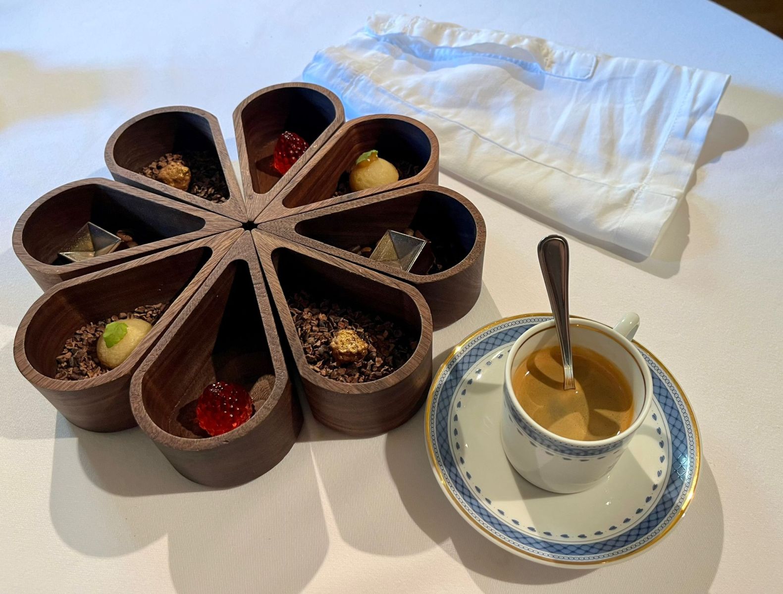 Uno de los gestos más memorables fue el detalle del postre final: la servilleta en forma de manga de camisa, un guiño a cómo el chef, de niño, solía limpiarse la boca en la manga. Un recordatorio de que, incluso en la alta cocina, la memoria y las raíces tienen un papel fundamental.