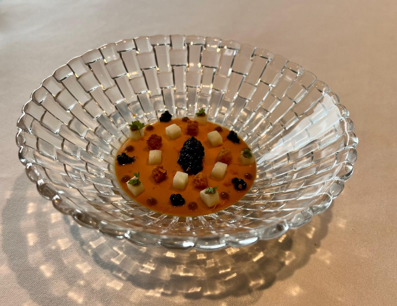 O menú constaba de 6 aperitivos e 14 pratos, ademais dos debidos petit fours. A cantidade de comida foi abundante, así como a súa calidade. Os ingredientes utilizados eran sempre da zona.